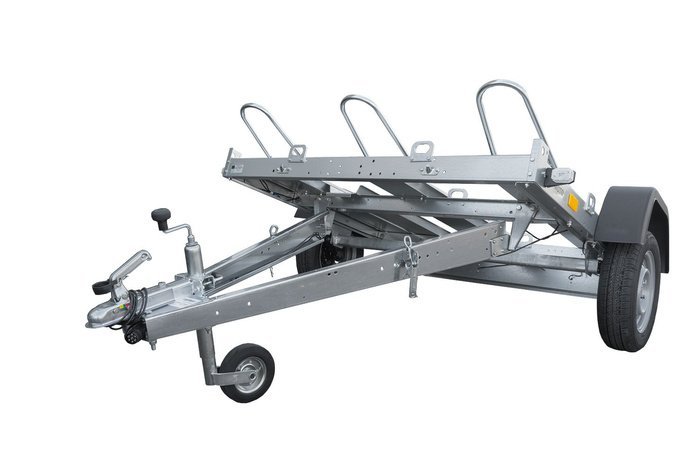 Remorque moto basculante UNITRAILER MOTO 3/R avec ressorts est parfaitement adapté pour le transport de trois motos. Poids maximal autorisé de 750 kg. Livré avec timon rabattable. Notre remorque UNITRAILER MOTO 3 est un modèle très pratique et idéal pour le transport de trois motos. Nous avons développé une remorque qui vous permet de charger et de transporter facilement et rapidement jusqu’à trois motos. Grâce à la méthode d’emballage spéciale, nous pouvons envoyer le modèle UNITRAILER MOTO 3 directement chez vous par courrier. L’expédition et la livraison ne prennent que quatre à cinq jours ouvrables !